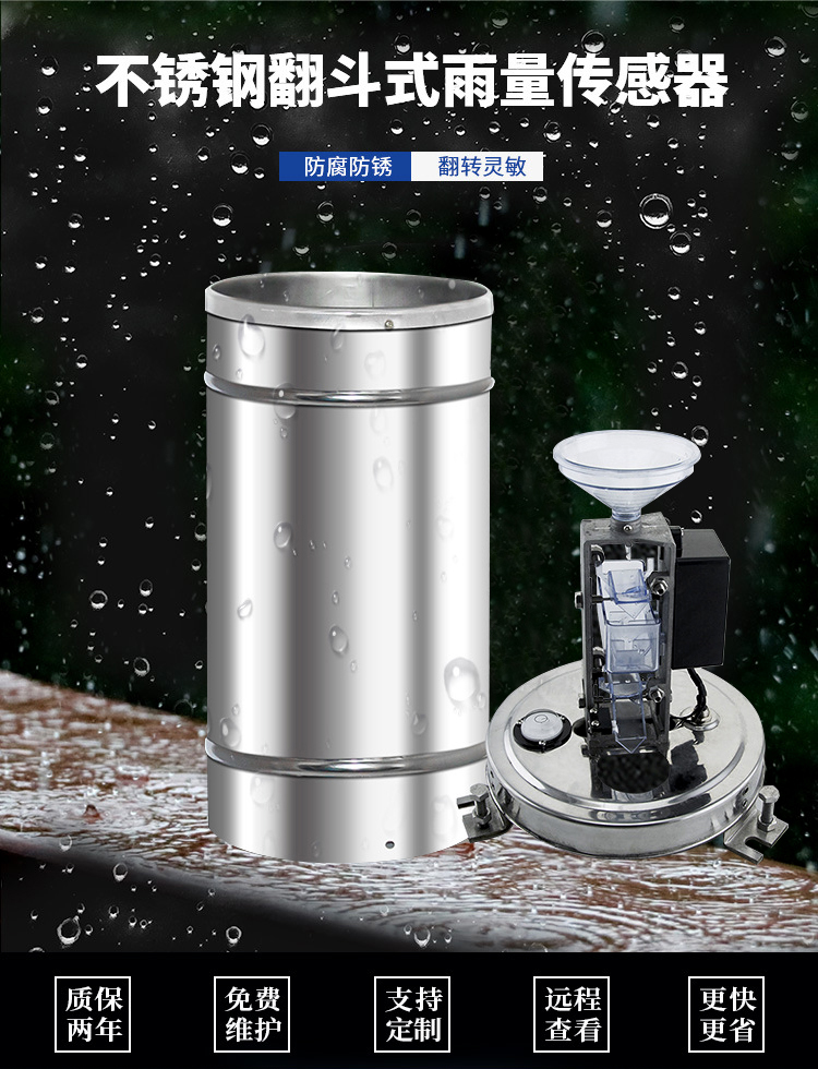 翻斗式雨量傳感器是一種水文、氣象儀器,用以測(cè)量自然界降雨量,同時(shí)將降雨量轉(zhuǎn)換為以開關(guān)量形式表示的數(shù)字信息量輸出,以滿足信息傳輸、處理、記錄和顯示等需要。可用于氣象臺(tái)(站)、水文站、農(nóng)林、國(guó)防、野外測(cè)報(bào)站等有關(guān)部門,配合雨量記錄儀來測(cè)量降水量、降水強(qiáng)度、降水時(shí)間等。可為防洪、供水調(diào)度、電站水庫(kù)水情管理提供原始數(shù)據(jù)。